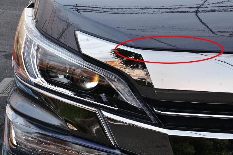 ↑天気が悪い時の撮ったので交換前の方がきれいに見えちゃったりもするけど(苦笑;;)じつは問題のゴムの上の大きなメッキパーツも一緒に交換なので、飛び石で細かいキズがあちこち付いていたメッキ部分も新品になって、2年半経ってだいぶ劣化が目立ってきていたヴェル様のお顔も少し若返った感じかな。