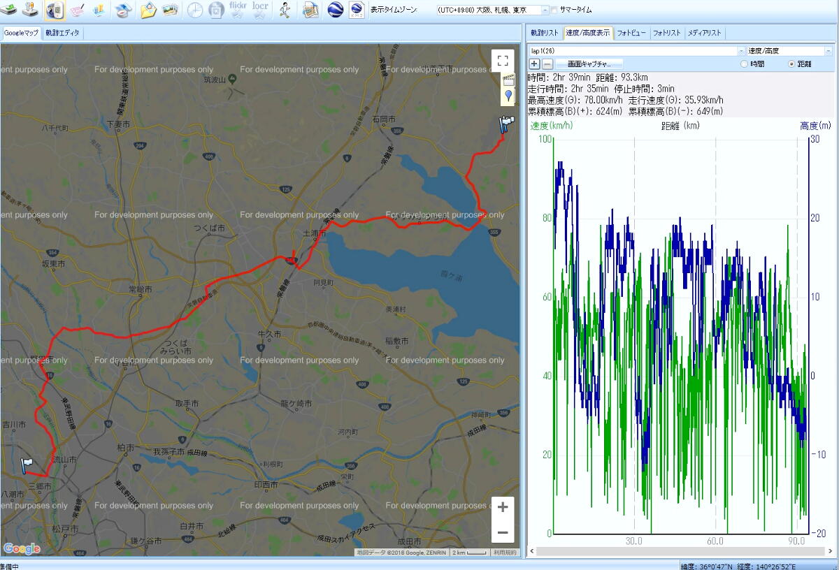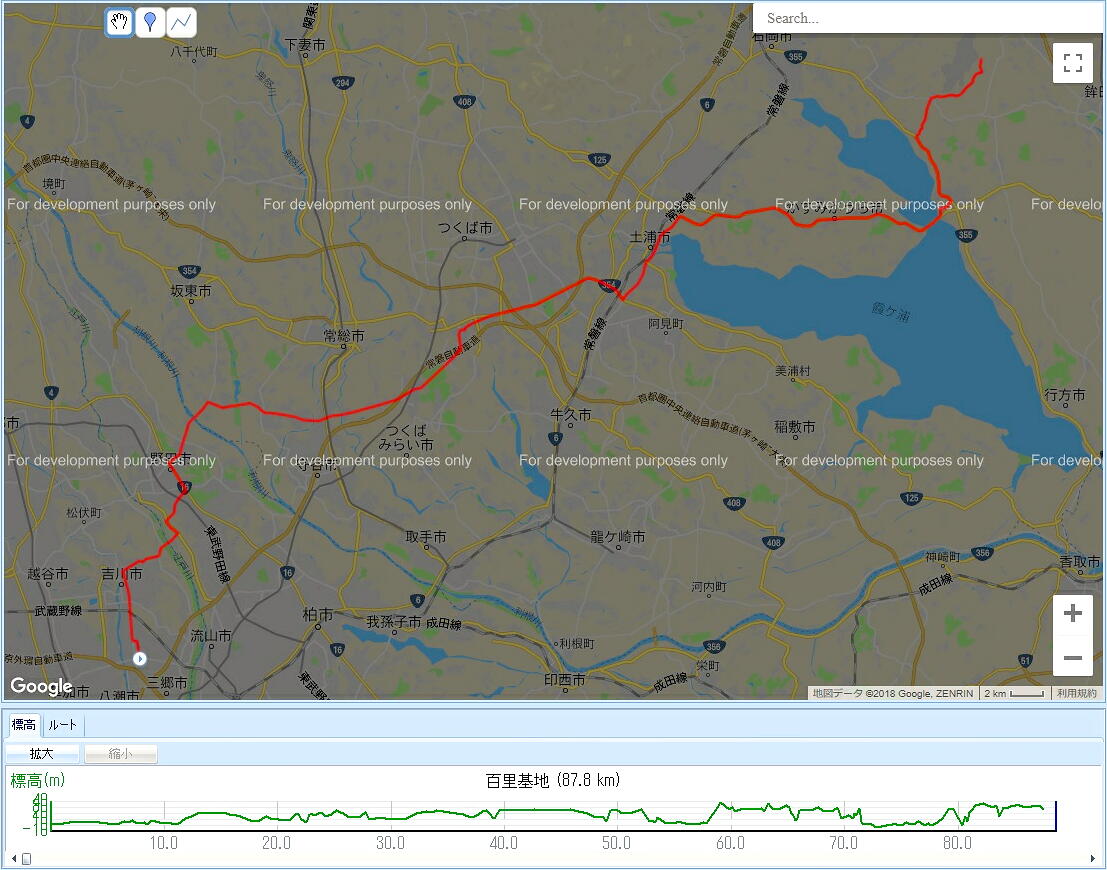 国道6号等交通量が多そうな道は避け(もちろん高速道なんてもってのほか)、あとは自分の走り慣れた田舎道(?)を通るこのルートに決定し、ASG-CM12に転送。