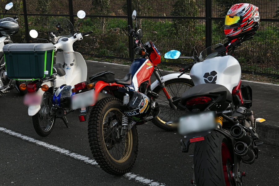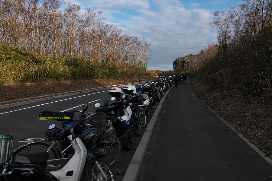 百里基地に近づくにつれて、私と同じ考えのバイク仲間をかなり多く見かけるようになってきていたのだけれど、二輪駐車場にはすでに大量のさまざまな種類のバイクが停められていた。