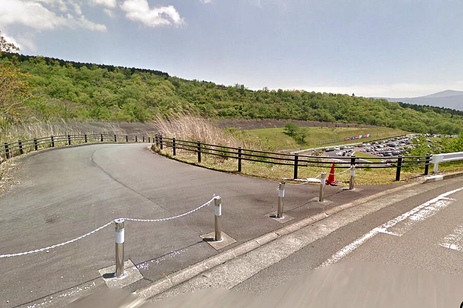 ↑その30度バンクは一部が今も残っているようで、Googleのストリートビューで確認できる(奥の斜面の下方に見える舗装路)。