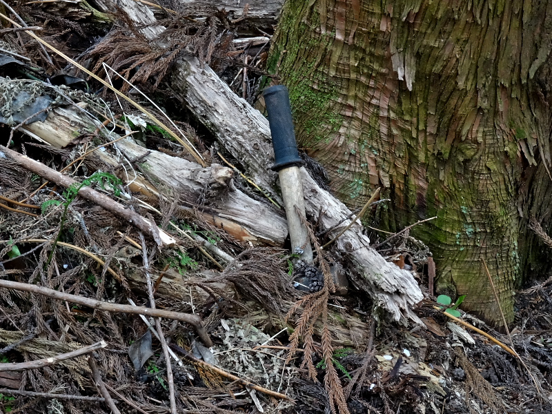 ↑太い木の幹の手前に、失くしてしまった私のハンマーが落ちていたのです!!