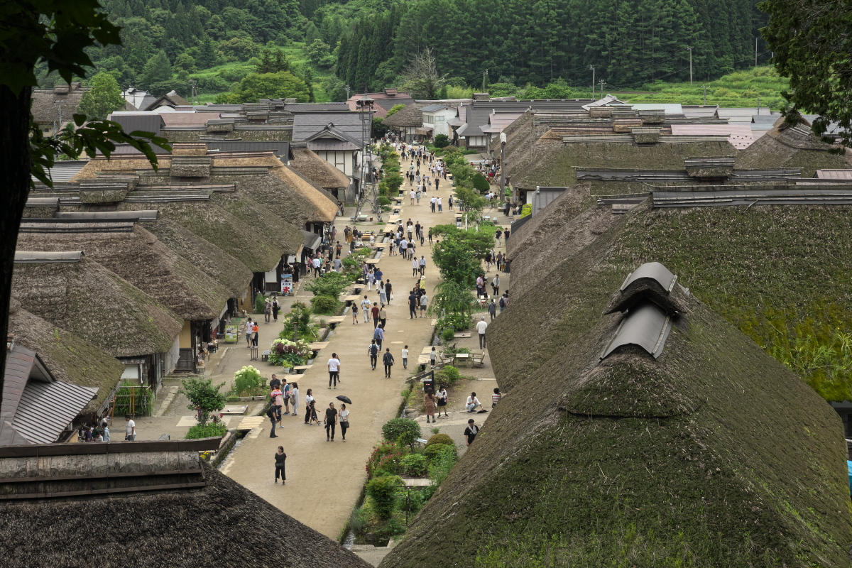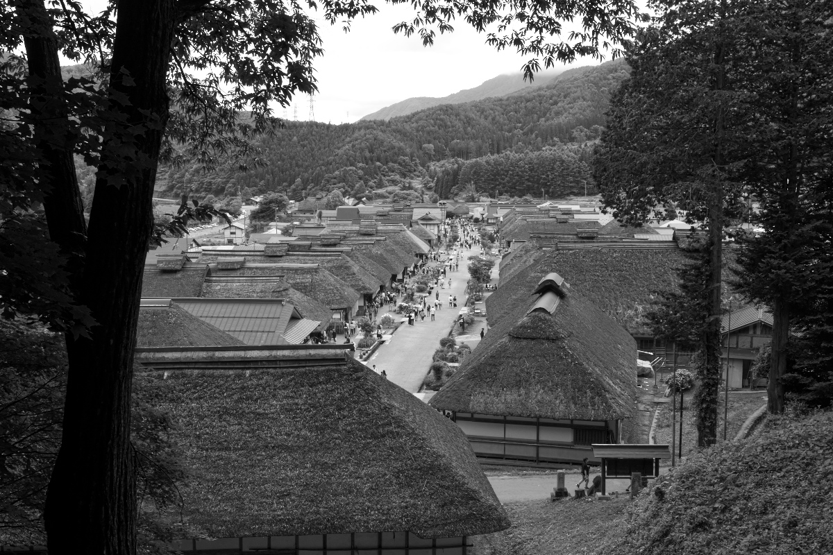 この後、ほとんどクルマの走っていない峠道をしばらく走ると、本日の目的地・大内宿に到着。