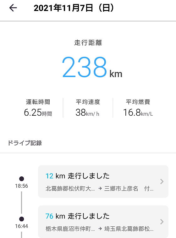 この日はこの上り下りを含む一般道のみ238km走行し、燃費計算値は16.8km/lという割と良い数値が出たが、このデータだけで「さすが低燃費タイヤ」と言うことはできないと思う。