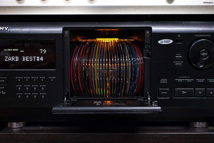 ↑普通のCDプレーヤーだと複数のCDを連続してかけられないけど、このSONY CDP-CX200Fなら200枚のCDを連続再生でき、ランダム再生もできるので、音楽無しではいられない人にとってはとっても便利なCDプレーヤーです。