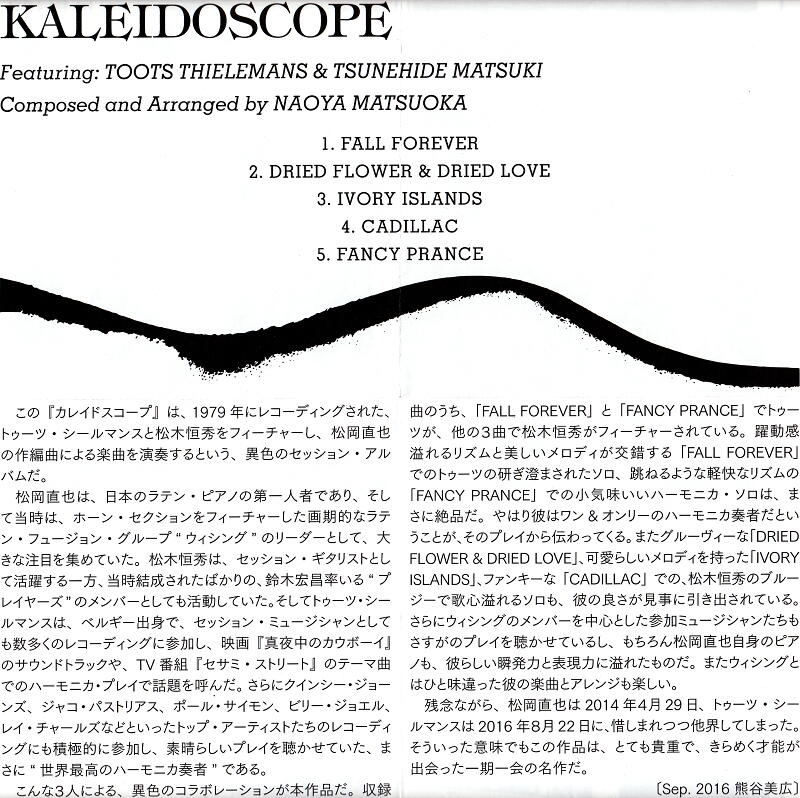 「松岡直也フィーチャリングトゥーツ・シールマンス&松木恒秀/KALEIDOSCOPE」―――ジャンルでいうと「ジャズ・フュージョン」になるが、このアルバムと私の出会いは、1979年にアナログ盤でリリースされた当時まで遡る。