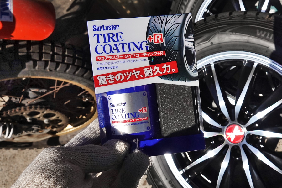 以前購入した「シュアラスター タイヤワックス」より耐久性に優れる「シュアラスター タイヤコーティング+R」です。