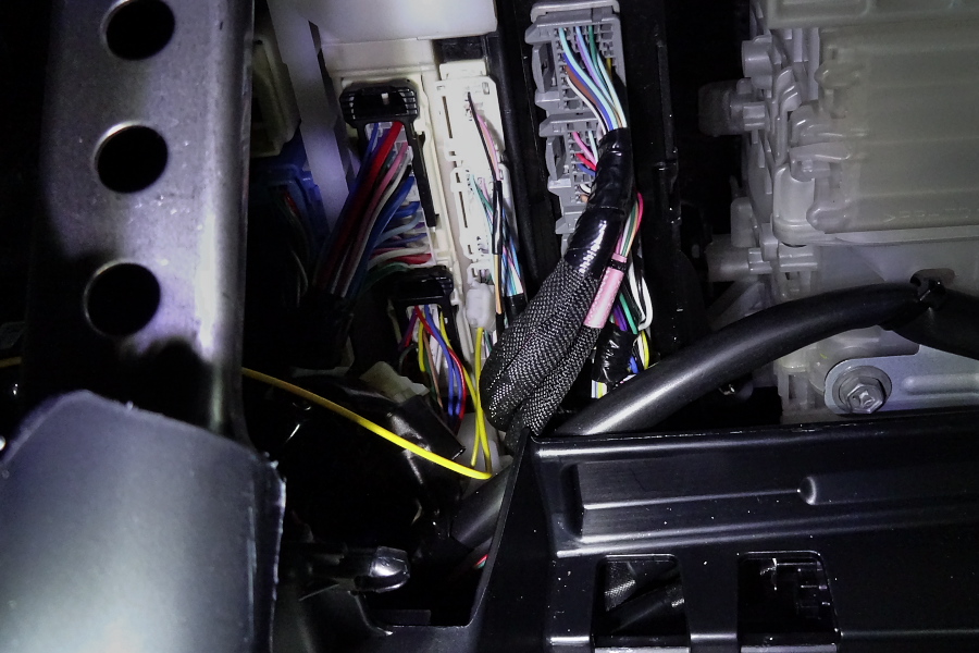 取り付け方法は、バックドア前のルーフ部に納められているカプラーにこの商品のカプラーを割り込ませ、黄色の線をルーフ横を通し、助手席前のグローブボックス横のカプラーの指定の配線にエレクトロタップで接続する――― まぁそれほど難しい作業ではないのだが、なかなか時間が作れなかったのでディーラーに定期点検で持ち込んだついでにやってもらおうと思い、工賃どのくらいですかねぇ、とかる~く聞いてみたところ‥‥‥