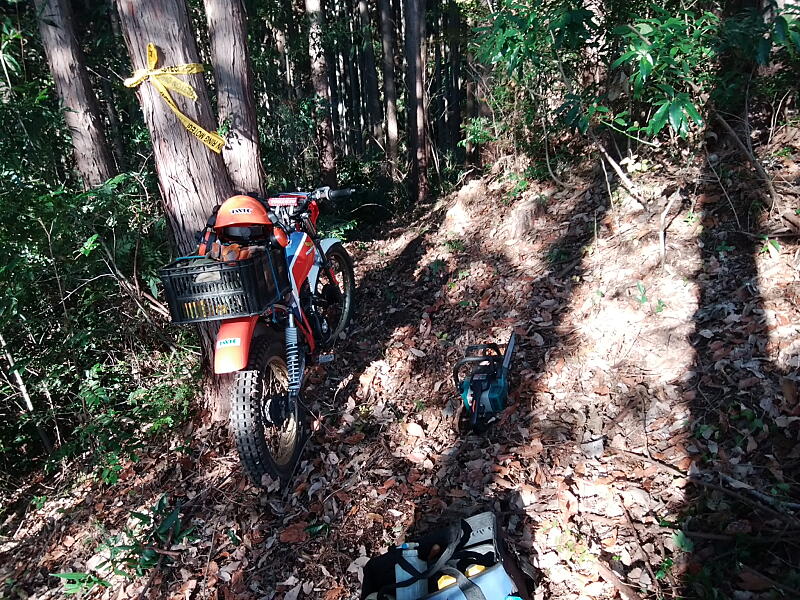 チェーンソー等一式を積んで山に入り、新たな道を切り拓いた。