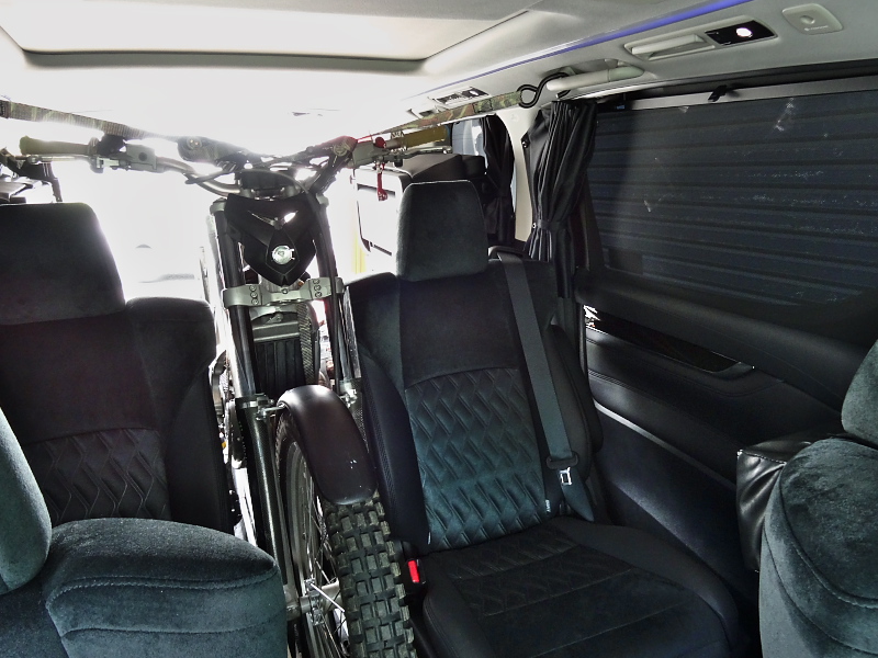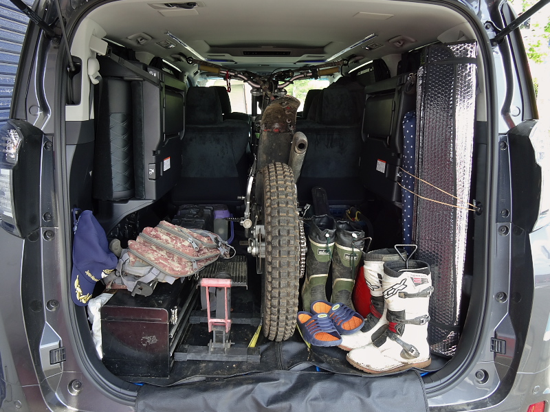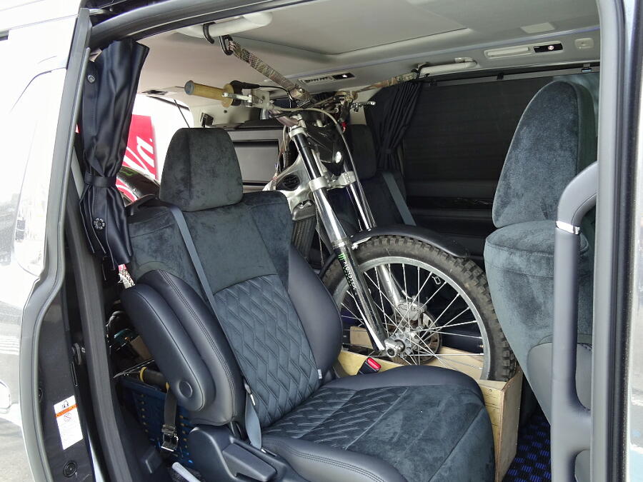 先代アル様の時は、2列目を前に移動し、こんな感じでバイクを積んでいた↓
