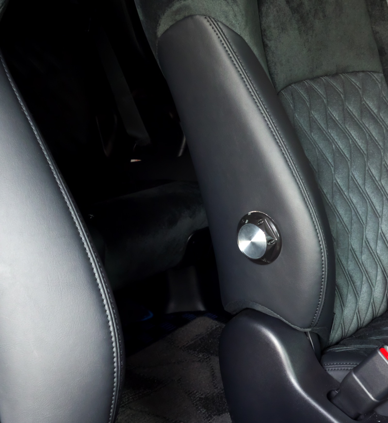 アームレストを外した穴はそのままだとカッコ悪いので、安物のホイール用センターキャップを両面テープで貼り付けて隠しました↓