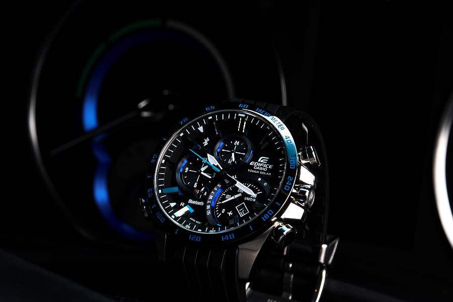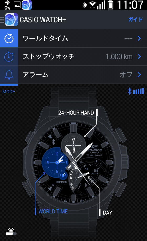 スマートフォンアプリと Bluetoothで連携し、自動時刻修正や世界300都市以上に対応したワールドタイム設定をはじめ、時計の各種設定が可能」という新機能を装備している。まずスマートフォンに専用アプリ「CASIOWATCH+」をインストールし、