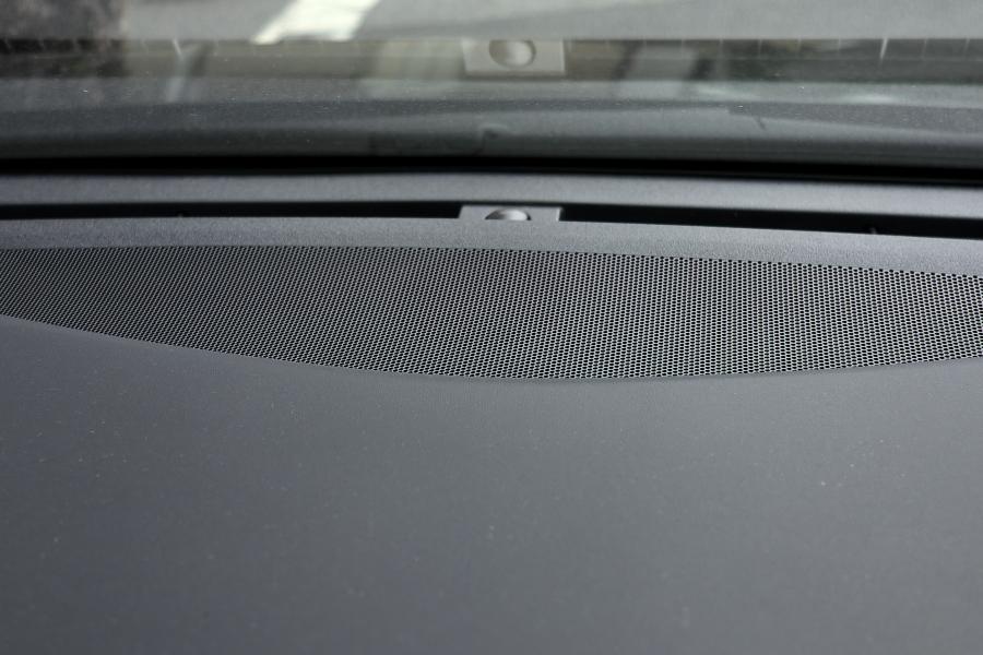 ↑ダッシュボード前端中央に埋め込まれた8cmミッドレンジ/ツィーター。音像定位をまとめるために重要なセンタースピーカーだが、これもやはりチューニングは難しいと思われる。