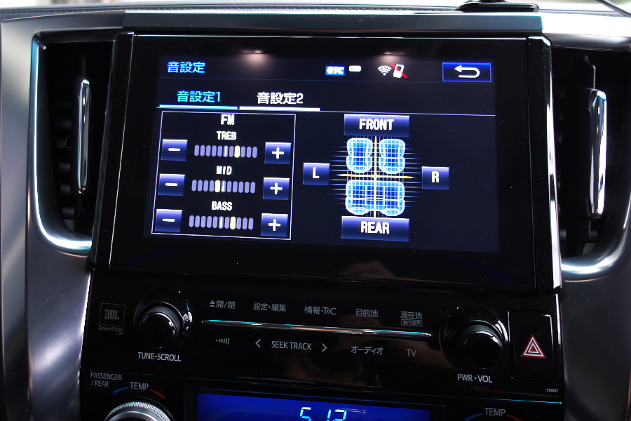 ユーザーが可能な調整はこの画面の項目だけ。こりゃまた何とも簡素な調整項目だねぇ、高音・中音・低音の調整と前後左右のバランス調整のみだが、実はこれ、先代アル様の調整画面とまったく同じ。