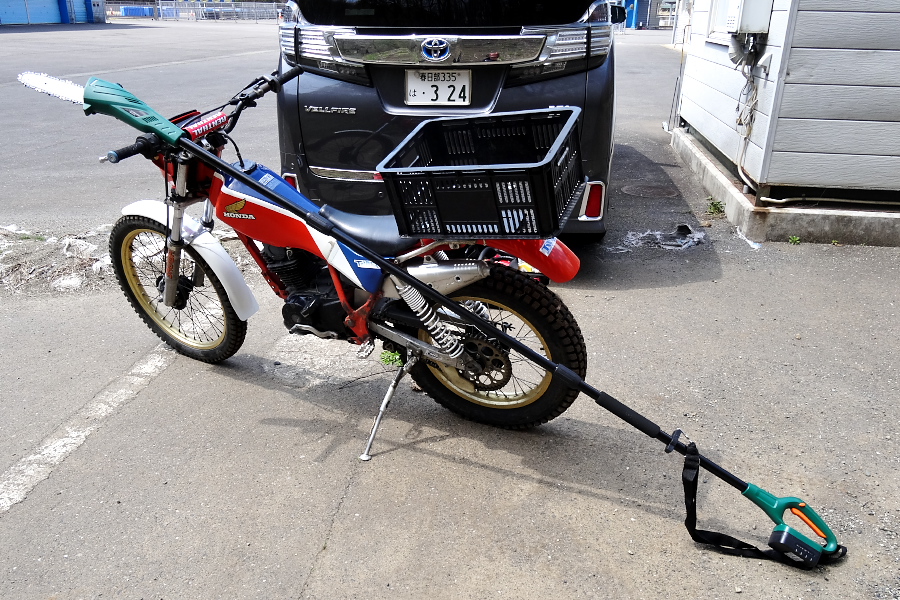 これは使える!!‥‥‥ということで、組み立て式のロッドを分解してTLR200に積んで、山の奥の邪魔な枝を切りに行きました。