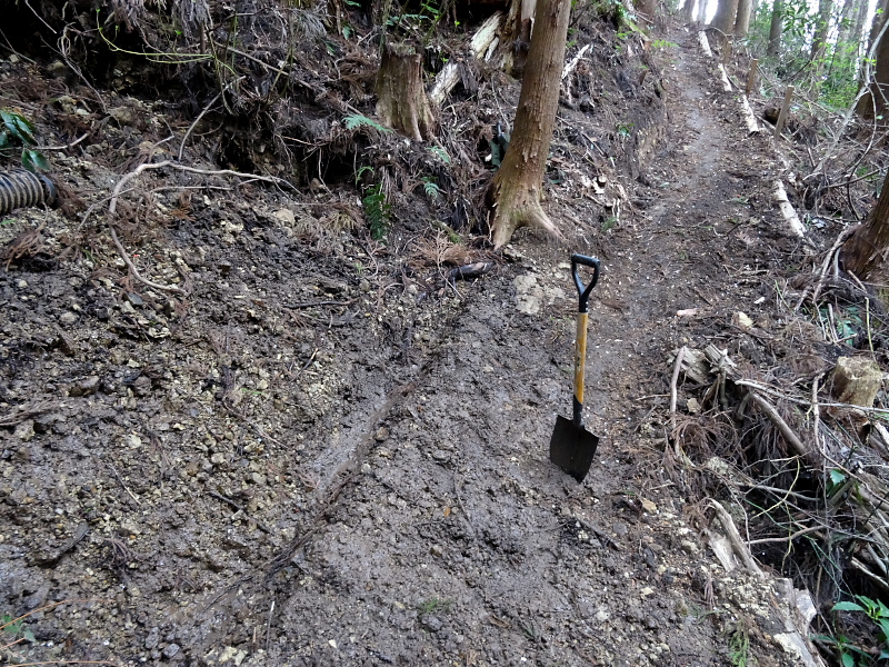 ↑特にこの場所は、水が湧き出ているところを土で埋めて、そのままじゃグチャグチャになってしまうから後から排水用のパイプを埋めたりした問題のある場所だっただけに、崩れていないか気になっていたのですが、配水管がちゃんと機能してくれたようで崩れていませんでした。