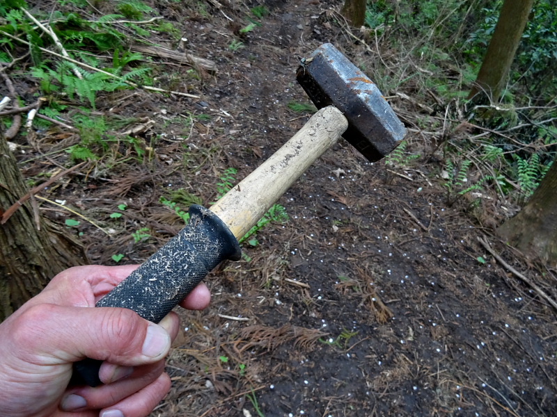 ↑太い木の幹の手前に、失くしてしまった私のハンマーが落ちていたのです!!