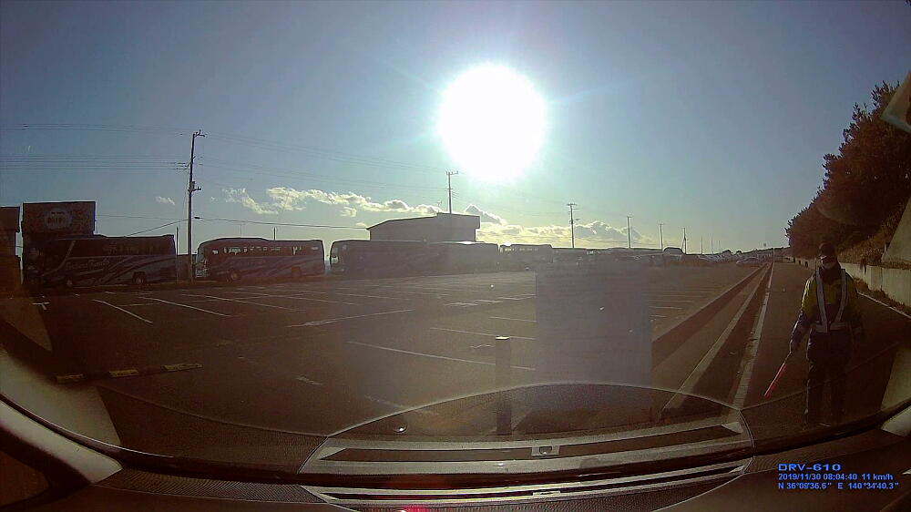 ↑途中、道路の真ん中にタヌキと思しき動物が横たわっていて、避けるのも危険だったのでそのまま真上を通過することになり、なんとかヴェル様の最低地上高をクリアして触らずに通過することができホッとするという一幕もあったが、渋滞もなく8時オン・ジ・アワーに大竹駐車場入り口に到着。