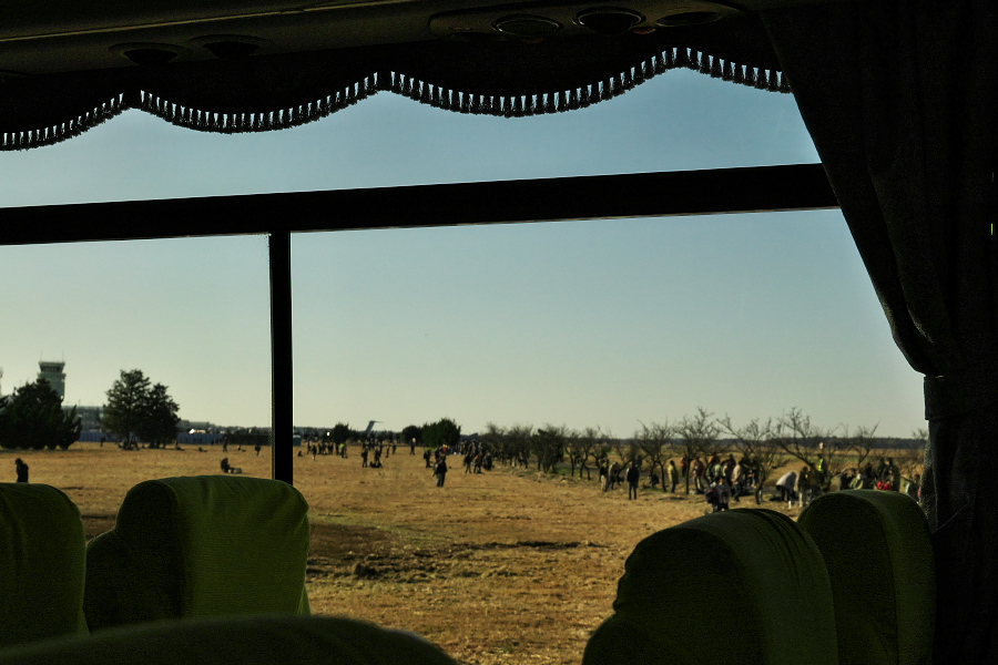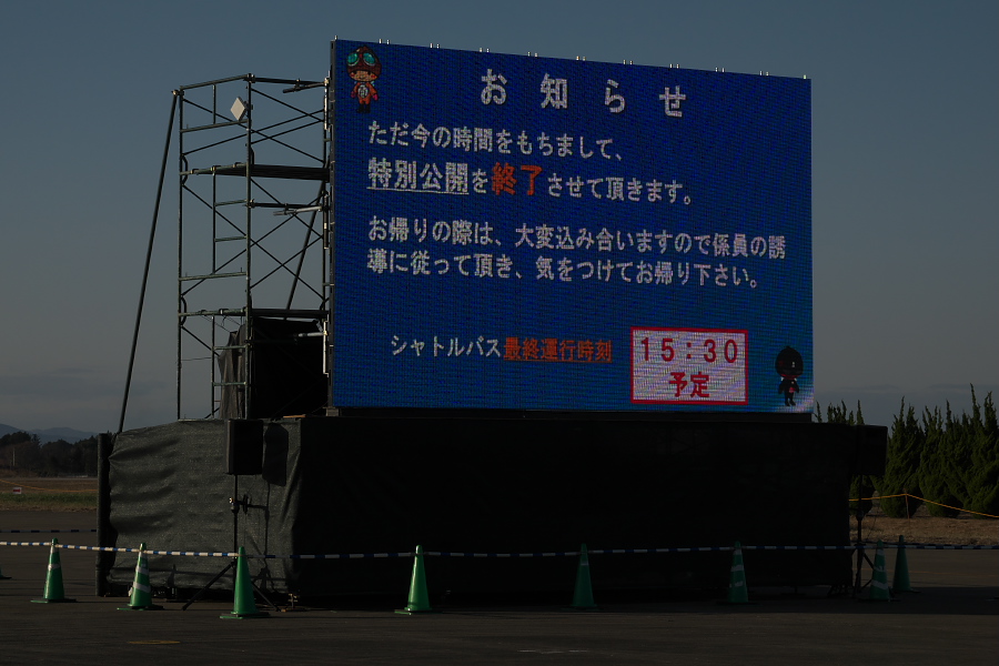 ↑前を走るシャトルバスの表示板は「百里航空祭」。なんかウケる~(^^)。