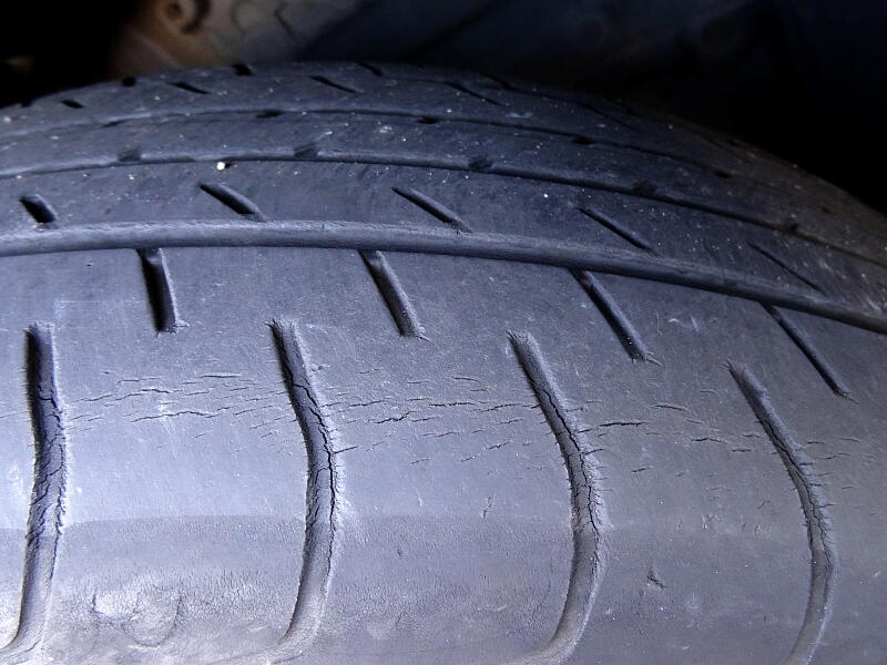 さらには乗り心地もゴツゴツ感が強く、そのくせハンドル操作に対する応答は悪く、中速~高速のコーナリングでは思うように曲がってくれないという、まったく良いところがないタイヤという印象。冬用に購入した「DUNLOP WINTER MAXX 01」の方がスタッドレスタイヤなのによっぽど良い走行フィーリングだと思えるほどで、今回この酷いヒビ割れを見て今すぐに交換したい気分になった。