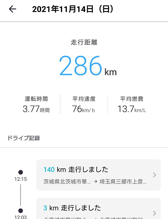 そしてこの1週間後、用事があって常磐道を約280km走行することになったが、燃費計算値は13.7km/lと出た。