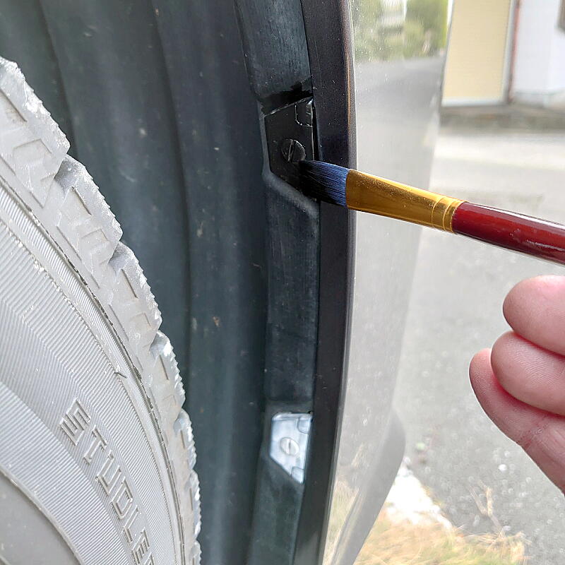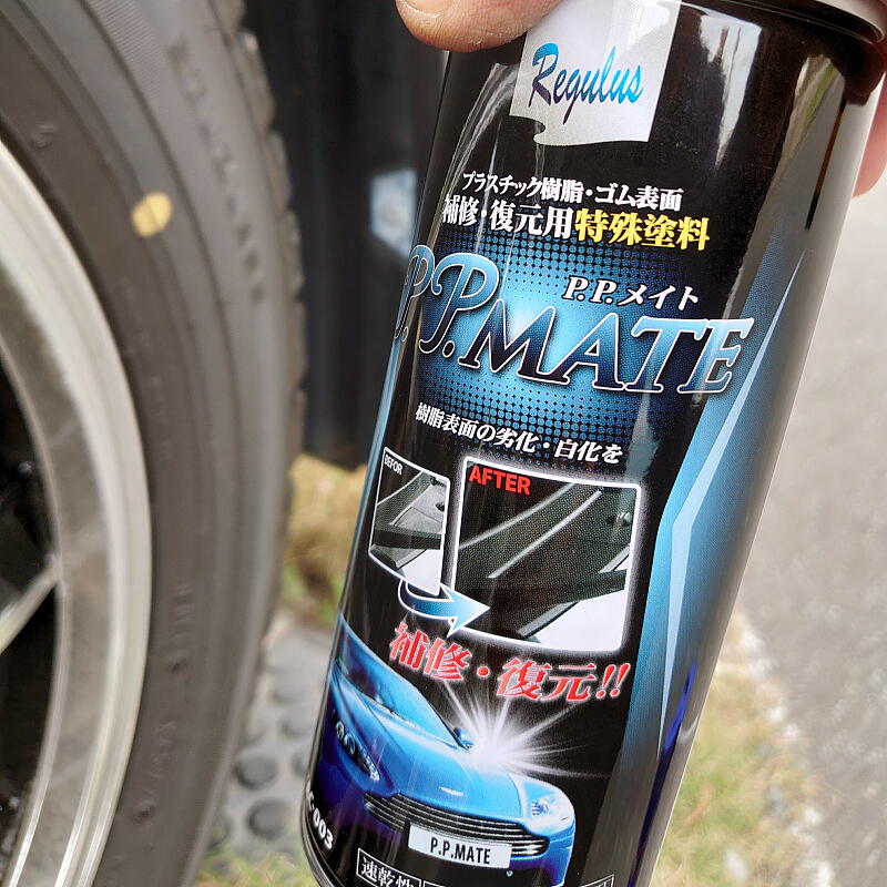 そこで、もう今シーズンはお役御免のスタッドレスからサマータイヤに交換する前に、まずこの白化した部分のお色直しに取り掛かることにした。