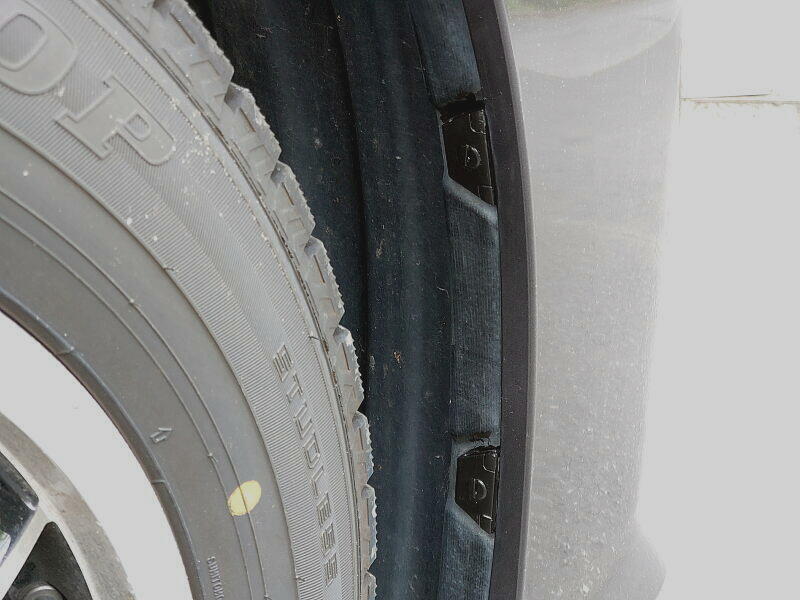 フロントのフェンダー内側にあるプラスチック製ファスナーが白化してしまっていて「弱さ+ボロさ」を醸し出してしまっているのだ。