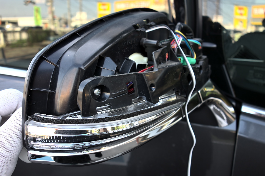 カバーを外すとこんな感じ。この状態でLED付ミラーを取り付けて、配線作業をしてカバーを取り付けて完了なんだけど、カバーを落としてキズをつけたことで動揺してしまい、写真をちゃんと撮るのを忘れてしまいました‥‥‥(^^;。