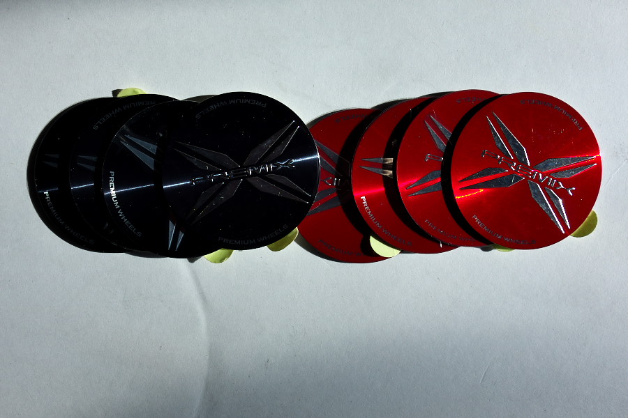 で、このホイール、センターキャップ部分のオーナメント(飾り)はブラックとレッドの2種類の物が付属していて、どちらかを選んで自分で貼り付ける仕様になってます(←なんだ、また「貼りもの」かよ)。