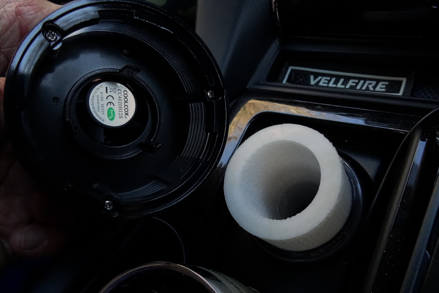 構造的には筒状の吸水フィルターと送風ファンの組み合わせという単純なもので、スイッチONにしても視覚的には何も変化がないのだが、使っているとあっという間にタンクの水が空になる。ということはそれだけ空気中に水分が蒸発して「加湿効果」を発揮しているということになるのだろう。そういえば長時間のドライブでも目に乾きを感じることはなかった。