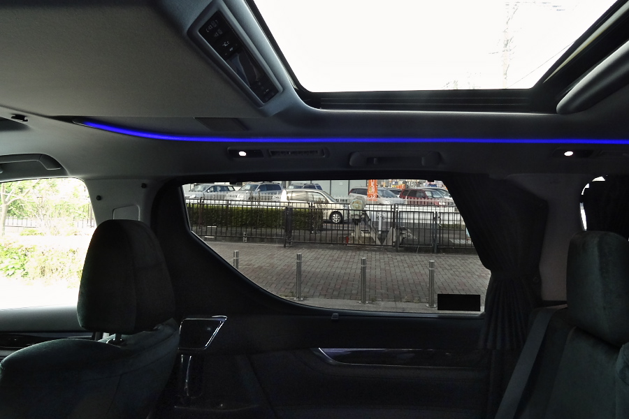 ↑後席ルーフのLEDイルミネーションは色が変えられたり、ムダと思える装備も多いんだけどね(^^;。