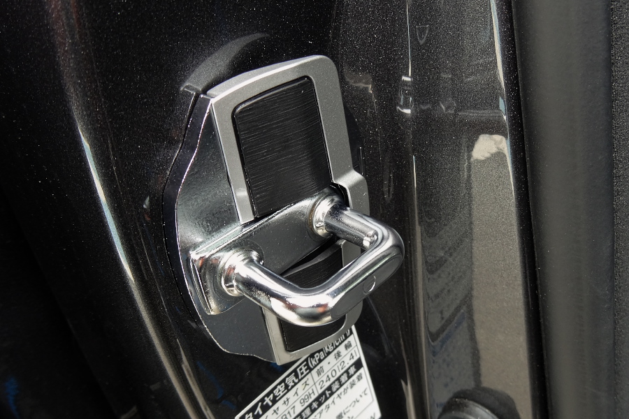 ネット上ではこのドアスタビライザーを装着した方のレビューがたくさんアップされていて、その中で「ドアを閉める時の音が変わった」とか書いている人がとても多かったのだが、残念ながらそれは「思い込み」からくる「カン違い」にほかならない。この構造ではドアを閉める時の音は変わらないはずなのだから。