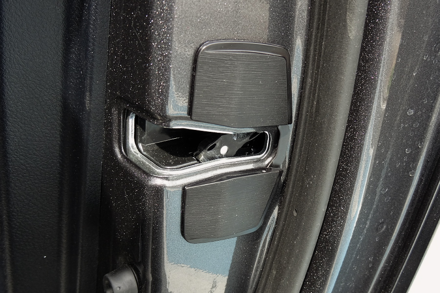 ↑これがドア側のプレート。これとボディー側のストライカーに取り付けられているスライドプレートが密着し、剛性アップにつながるというのだが‥‥‥