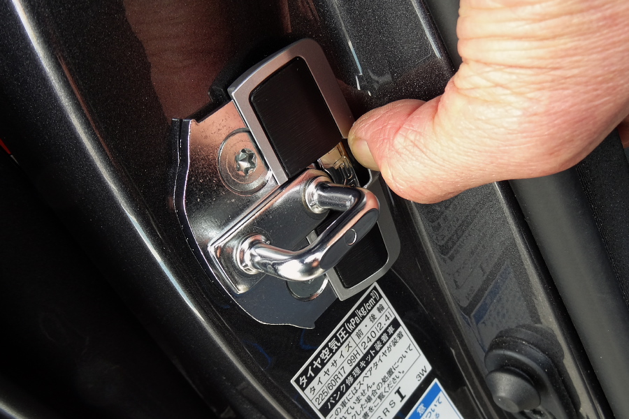 実はこの時私はまだドアスタビライザーの作動原理を充分に理解できていなかったのだが、実際にドアを閉めただけではプレート同士が弱いスプリングの力で接触するだけなので、ただドアを開け閉めしても装着前と何も変わらない、というのは正解である。