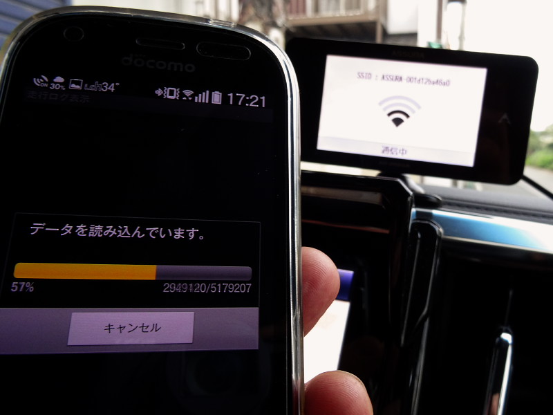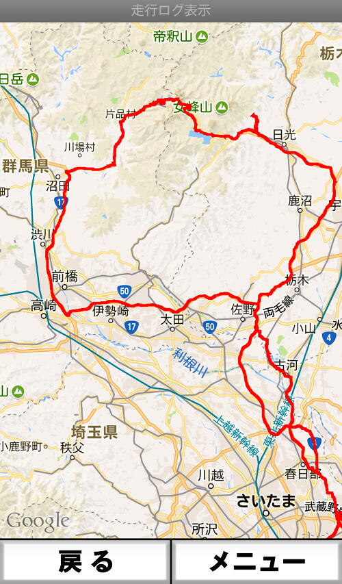 あ、今までレーダー探知機のルートログはMicroSDからパソコンに取り込んでGoogleearthに落としていたけど、スマホがあればレーダー探知機からWiFiでデータを取り込んで、すぐにスマホ画面で表示できるんですねぇ(上の画像はスマホのスクリーンショット)。