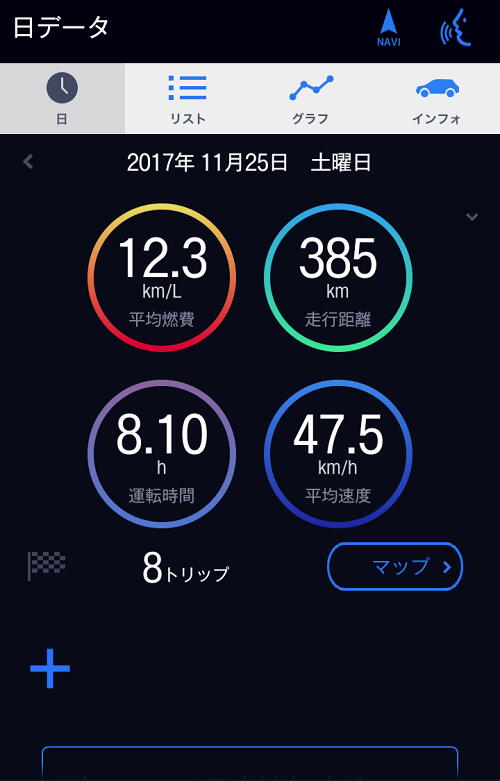 そしてやはりスマホのT-Connectアプリから今回の走行データ↓