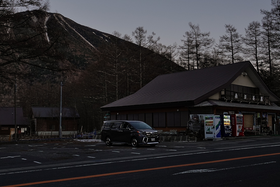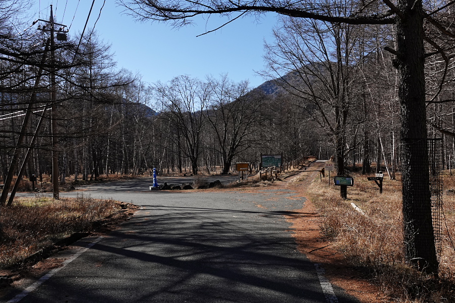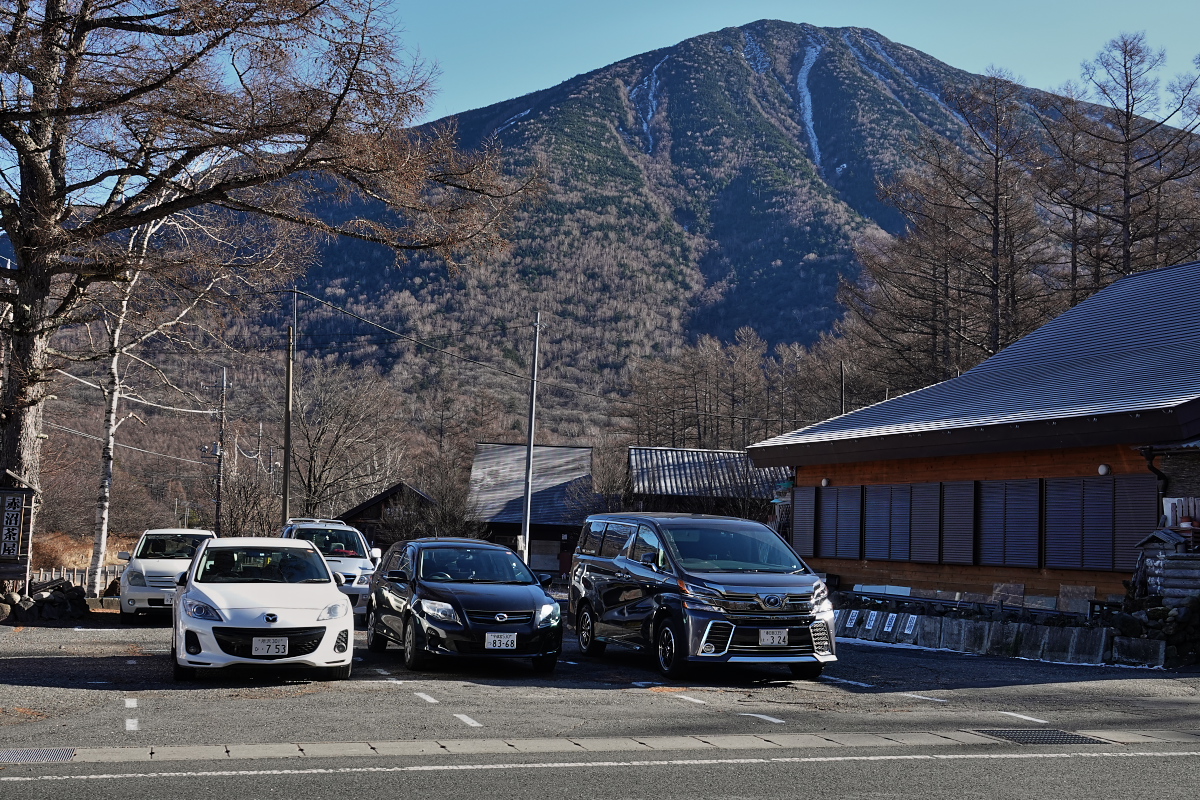 今回は日没時間が一年で一番早い時期だし、前回みたいに「最後は低公害バスで楽々移動」という奥の手が使えず、全行程徒歩になるので朝はちょっと早めに出発。9時半にはいつもの赤沼駐車場に到着したのだけど、大駐車場は12月に入ると閉鎖されてしまうので国道沿いの狭い駐車場にヴェル様を停め、いざ出発!!