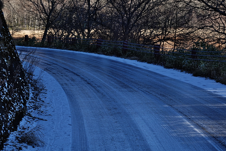 そして、低公害バスのルートでもある市道1002号はテッカテカのアイスバーン(@_@;)
