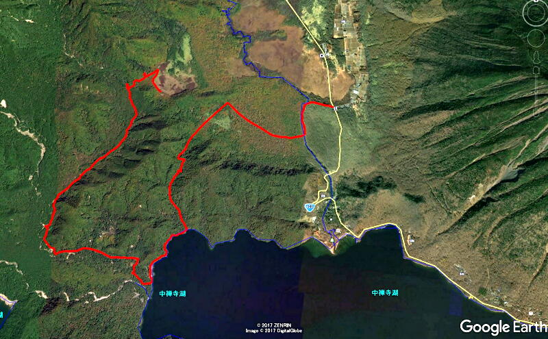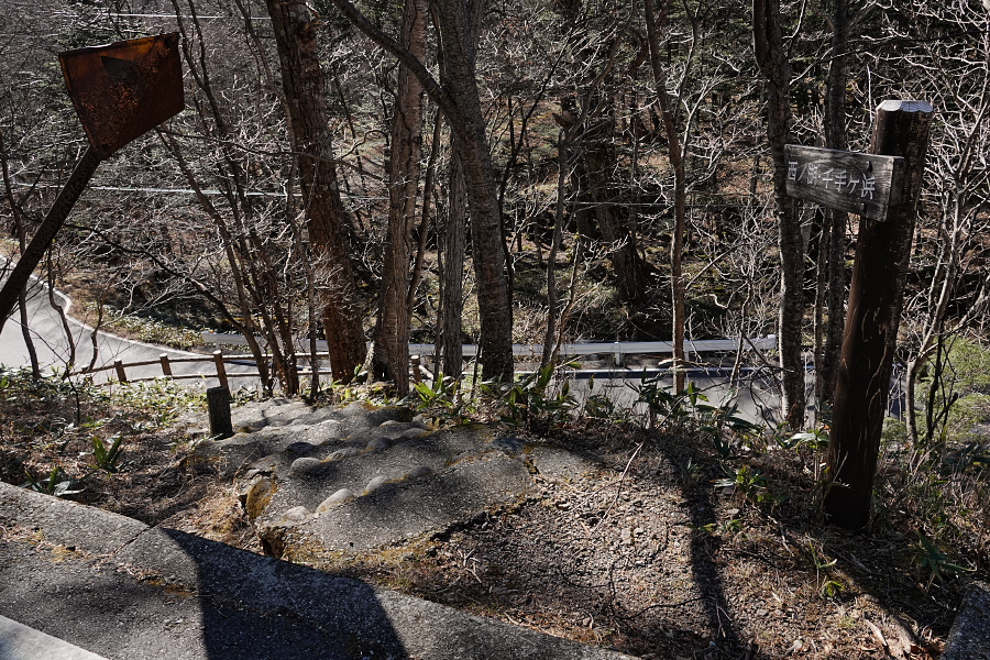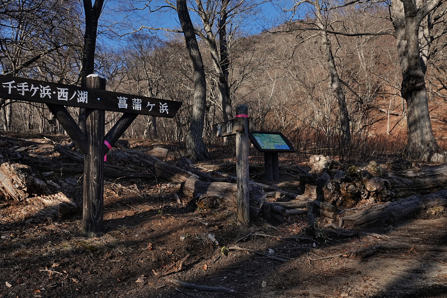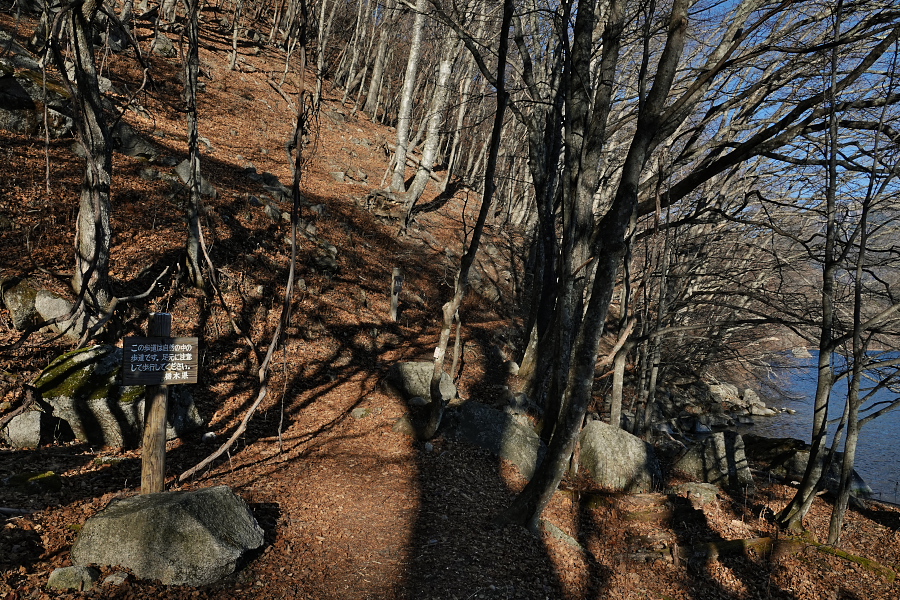 ここから先は初めて足を踏み入れるルート。中禅寺湖の湖岸の崖の上をしばらく歩いた後、熊窪ポイントで左折し高山方面へ向かう登山道を登り、ちょっとした峠を越えて市道1002号へ降りて行くという「健脚向け」のコースだ。