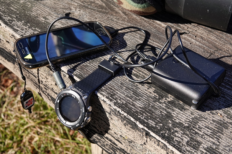 WSD-F20のレビューとか見ると、だいたい1日でバッテリー残量が無くなるというので、今回はまだそれほど減っていないのだけどテストという感じでスマホと一緒に充電してみた。