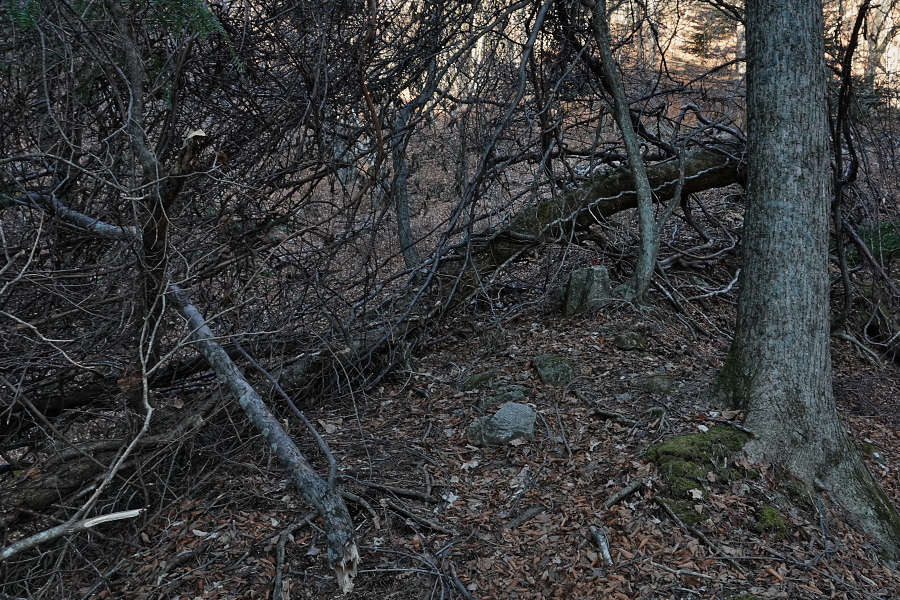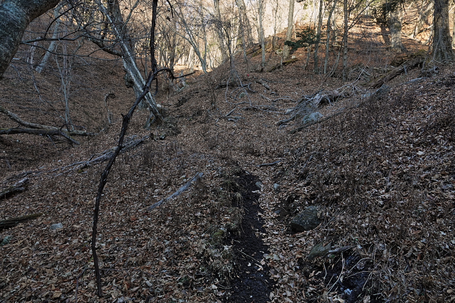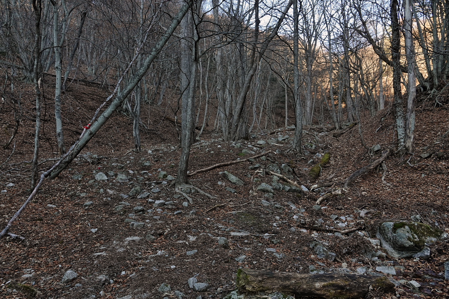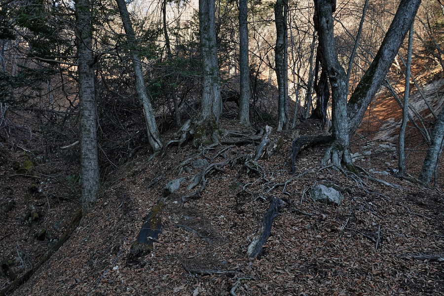 今の時刻は14時20分、日没は16時33分だから計算上はギリギリ日没前に戻れるが、途中で何かあったら暗くなってしまった山道を歩かなければならなくなる。まぁそんな時のためにヘッドバンド付LEDライトも持っているので、遭難することはないだろうが、やはり日没前に帰り着くようにしたいので、先を急ぎたいところだが‥‥‥