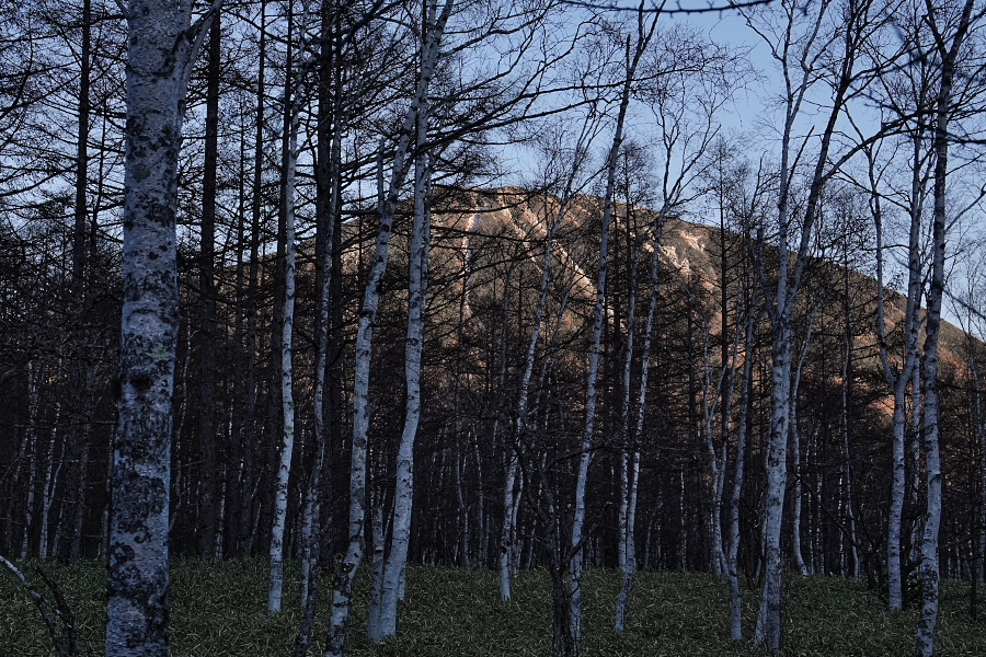 やがて雪も消え、美しい白樺林の向こうには見慣れた男体山の姿―――再びホッとした気分になる。