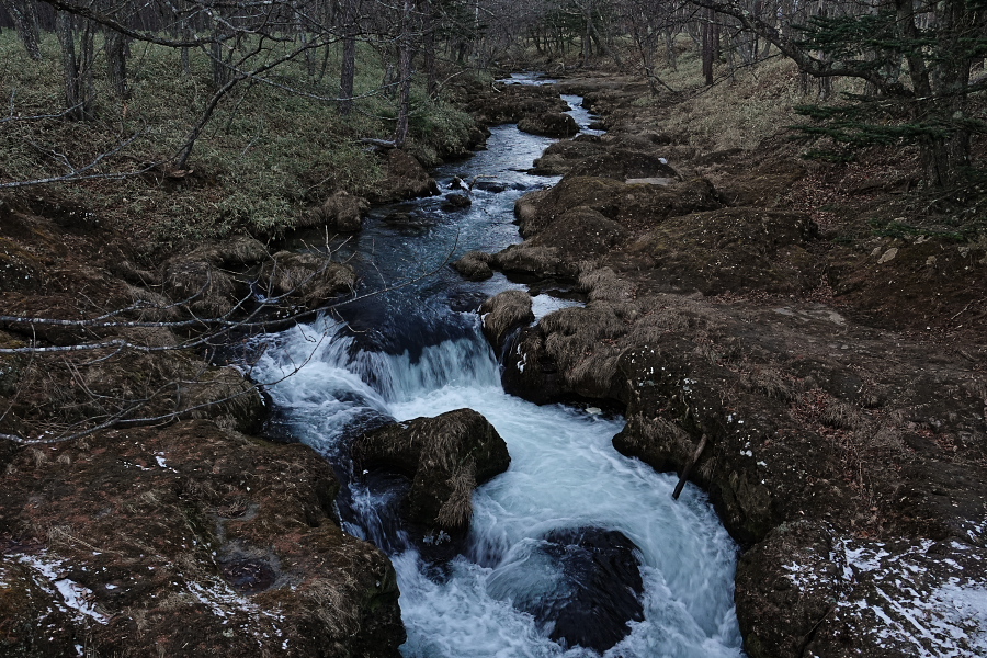 ↑湯川の流れ。この少し下流で竜頭の滝となって流れ落ちる。
