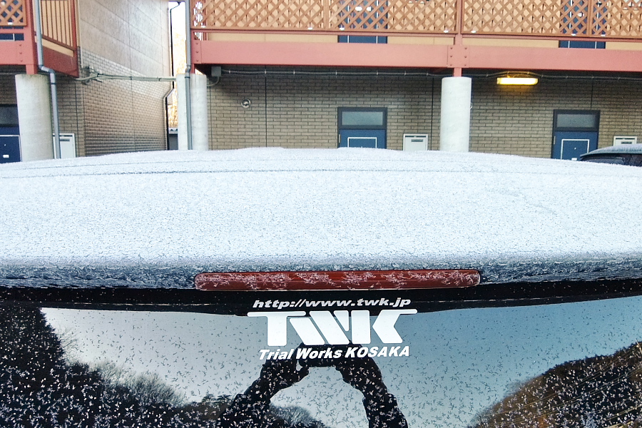 ↑まるで雪が積もったかのようなルーフの霜――― (@_@;)