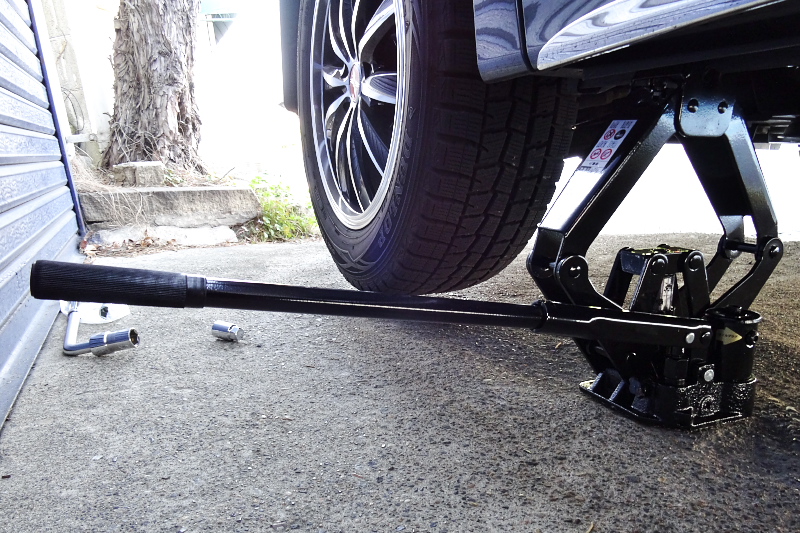 で、タイヤ交換の際これまでは車載のパンタグラフジャッキ(スクリュー式)を使っていたのだけど、これがもうどうにも効率が悪くって無駄に体力を消耗していたので、新兵器を導入した。