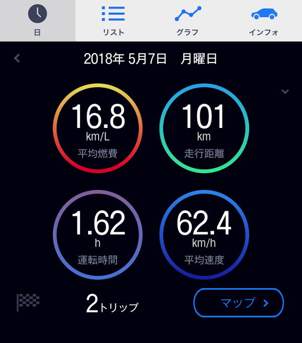 そんな感じで、3日間とも雨に降られたツインリンクもてぎでの土方を終え、帰りはいつもの下道でエコ運転で帰宅。さっそくT-Connectのマイカーログを見ると―――