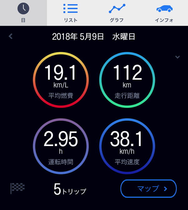 ちなみに上のスクリーンショットは帰り道の一部の区間の数値。帰路全体を通してのものはこちら↓