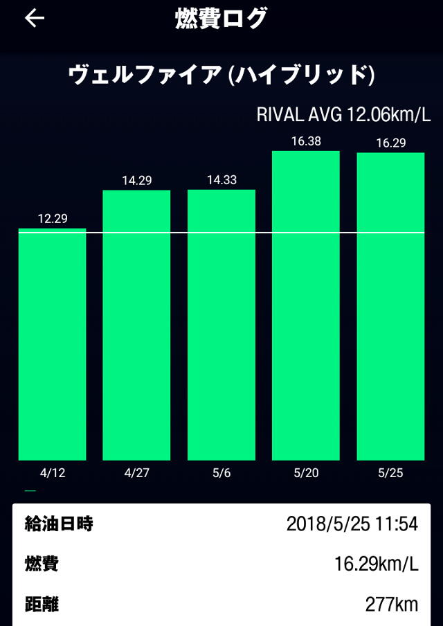 で、またまた燃費の話になるけど、今回もヴェル様は好燃費を記録。